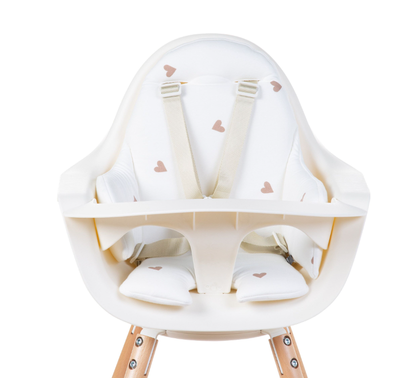Coussin de chaise haute Jersey Hearts conçu pour les chaises hautes Evolu 2 et Evolu ONE.80° en jersey de coton de haute qualité. Le coussin de siège comporte des ouvertures pour insérer les sangles de la ceinture de sécurité à 5 points.